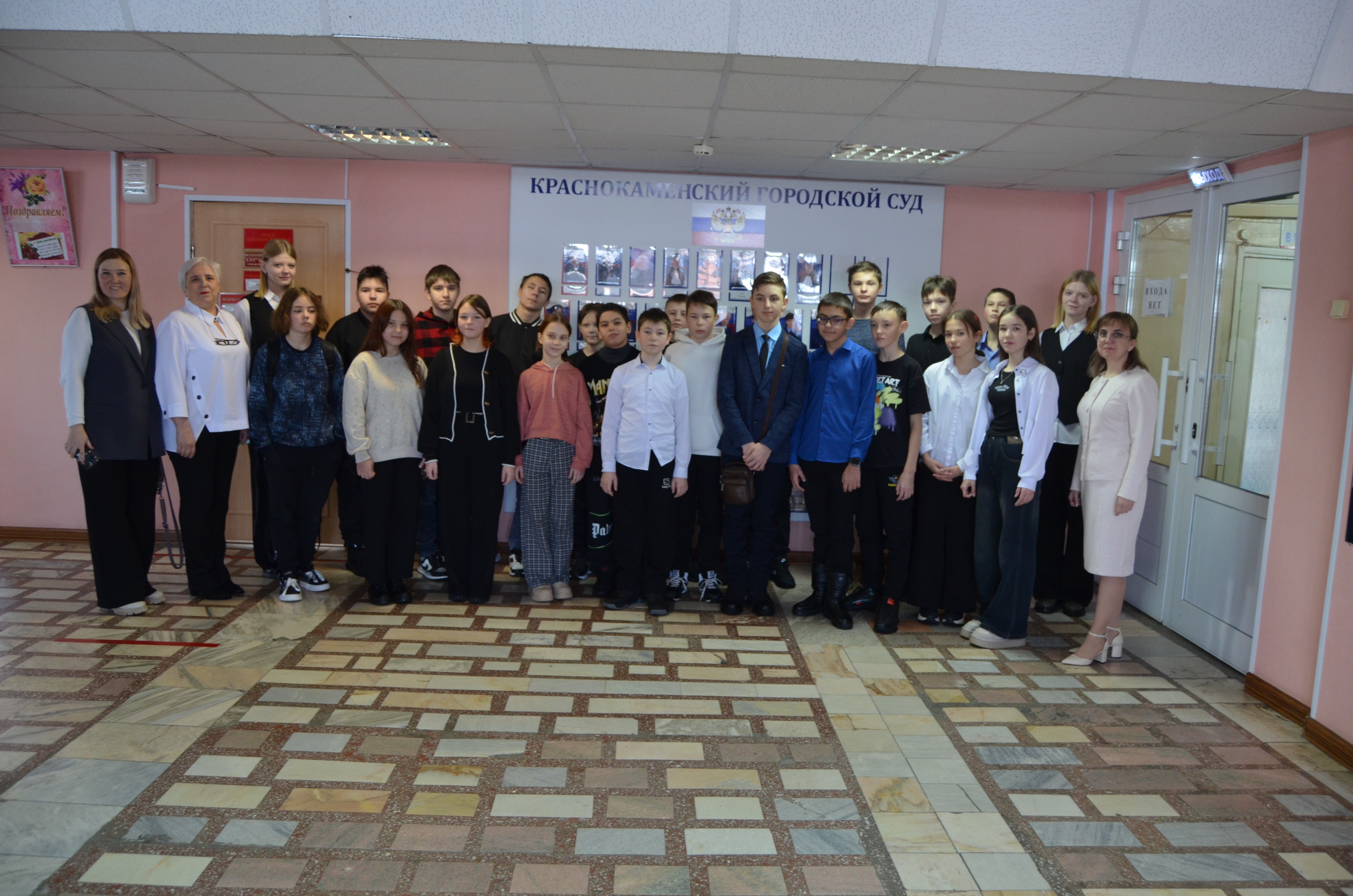 5 декабря 2024 года стены нашего суда впервые встречали таких юных гостей - шестиклассников МАОУ «СОШ №7», поэтому экскурсия прошла немного в другом формате. Традиционно экскурсию ребята начали на первом этаже здания суда возле Общественной приемной. В начале экскурсии ребят заинтересовал стенд, размещенный в фойе, с фотографиями судей и сотрудников суда. Затем им рассказали о порядке работы приемной, полномочиях помощников судей, осуществляющих прием граждан. Далее ребята посетили общий отдел, где ведущий специалист, работающий с уголовными делами, рассказал ребятам о категориях дел, которые чаще всего рассматривают в нашем суде. Затем ребята отправились в архив, где им предоставили возможность пройти вдоль стеллажей с гражданскими, уголовными и административными делами. Поскольку наши гости еще совсем юные, для них подготовили и предложили посмотреть, потрогать, примерить награды Краснокаменского городского суда за достижения в различных спортивных мероприятиях. После экскурсии судьей Краснокаменского городского суда Д.С. Поповой подготовлена и проведена с ребятами правовая игра «А судьи кто?», приуроченная ко дню юриста. Получилось три команды: «Знатоки», «Умники», «Мыслители». Перед началом игры перед ребятами выступил с напутственным словом председатель Краснокаменского городского суда К.В. Салбуков, рассказав, что значит быть судьей, как это ответственно, пожелал им удачи в игре и в учебе. Во время игры дети увлеченно обсуждали вопросы, попробовали себя в роли следователя – расследовали, кто совершил преступление. Узнали много интересного о правах и обязанностях, об исторических личностях и каким должен быть судья. В конце игры, конечно же, были подведены итоги членами жюри – начальником общего отдела А.Н. Габдрахмановой и помощником судьи Е.В. Мухомедзяновой. Ребята получили грамоты в номинациях «Эрудиты права», «Покорители архива права», «Достойные юристы» и сладкие подарки, чем остались очень довольны. По блеску в глазах ребят было видно, что им интересно побывать в здании суда, узнать как построена работа судей, аппарата суда, а также поучаствовать в такой интересной викторине «А судьи кто?». Пресс-служба Краснокаменского городского суда