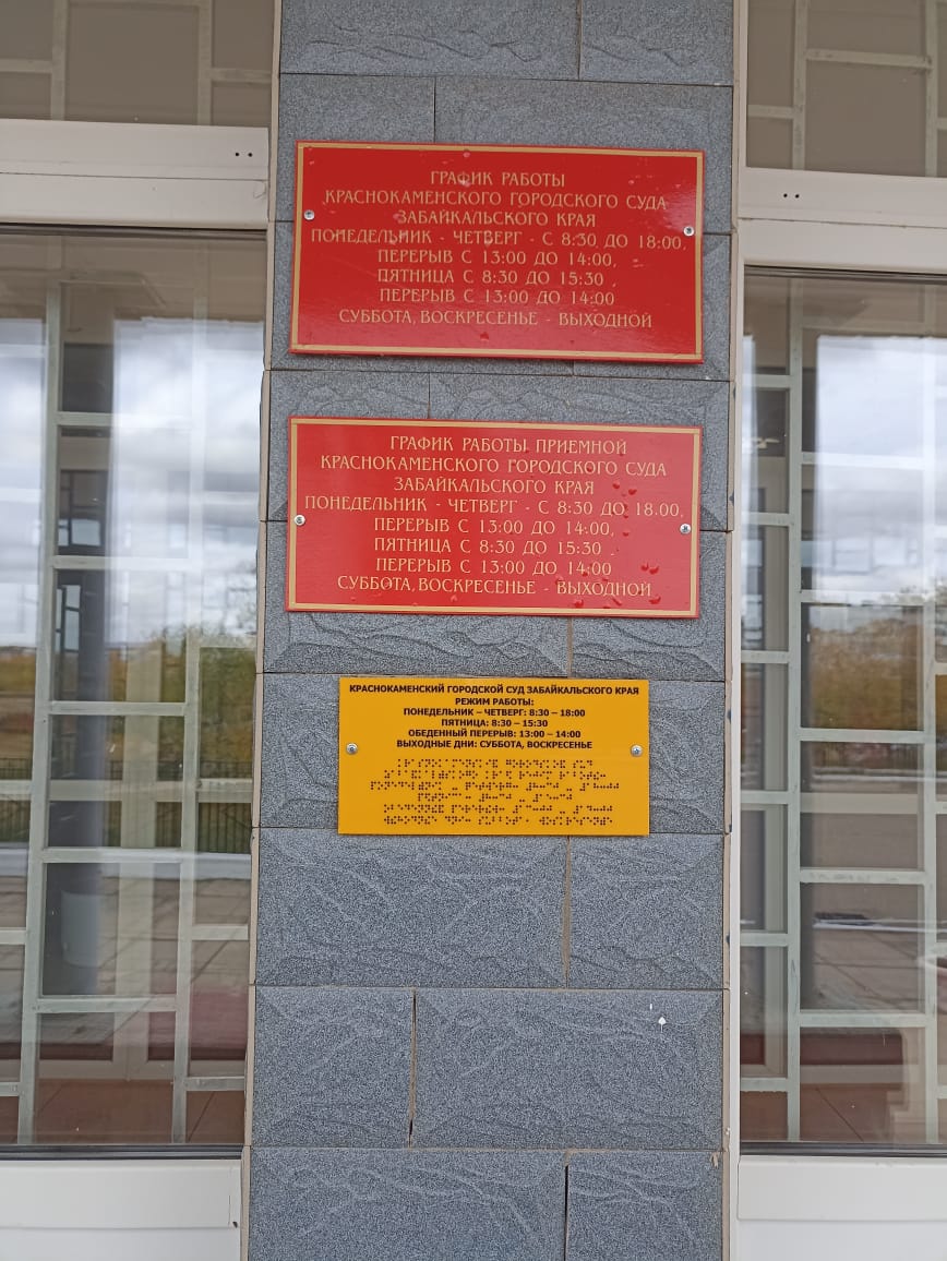 График работы Краснокаменского городского суда Забайкальского края |